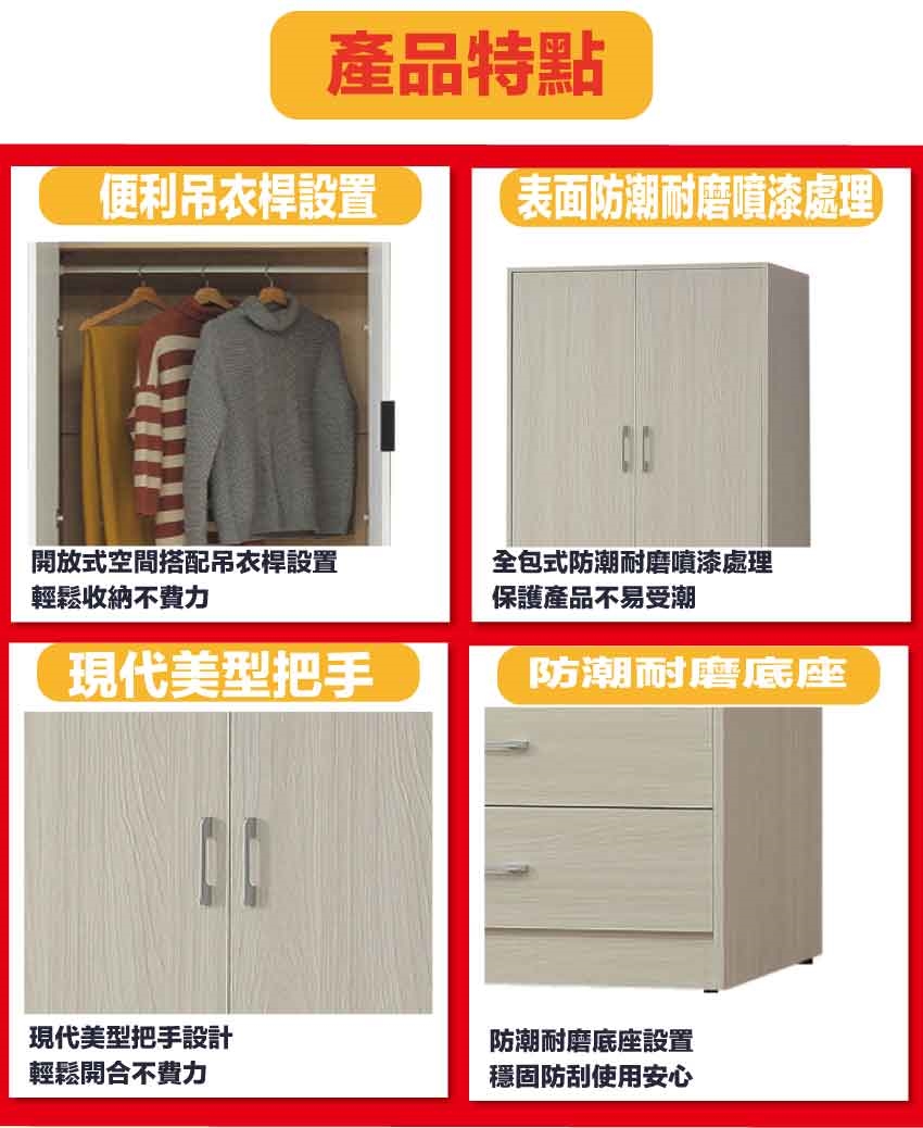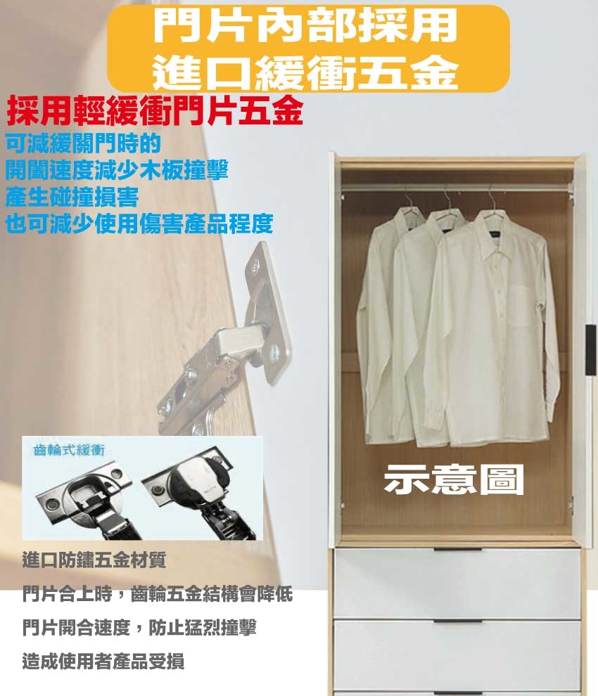 材質:防蛀木心板+防潮耐磨底座+防夾手緩衝門片五金+五金滑軌結構