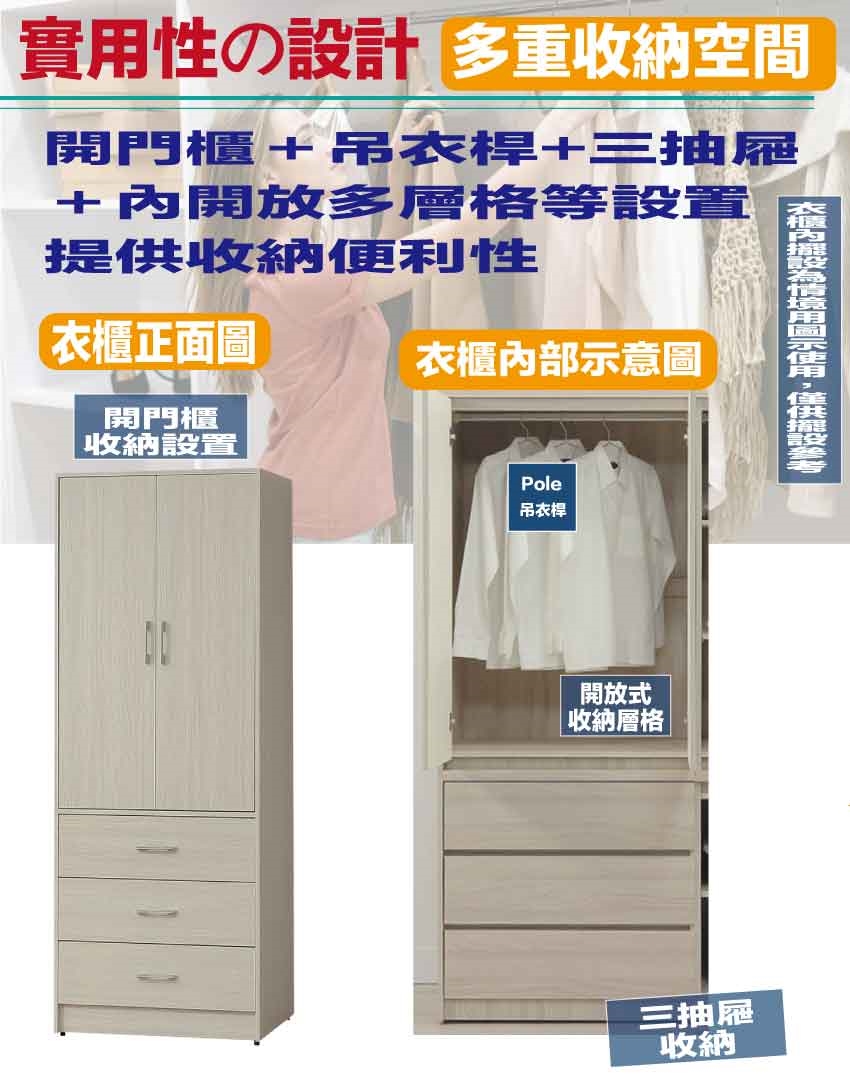開門櫃+吊衣桿+三抽屜