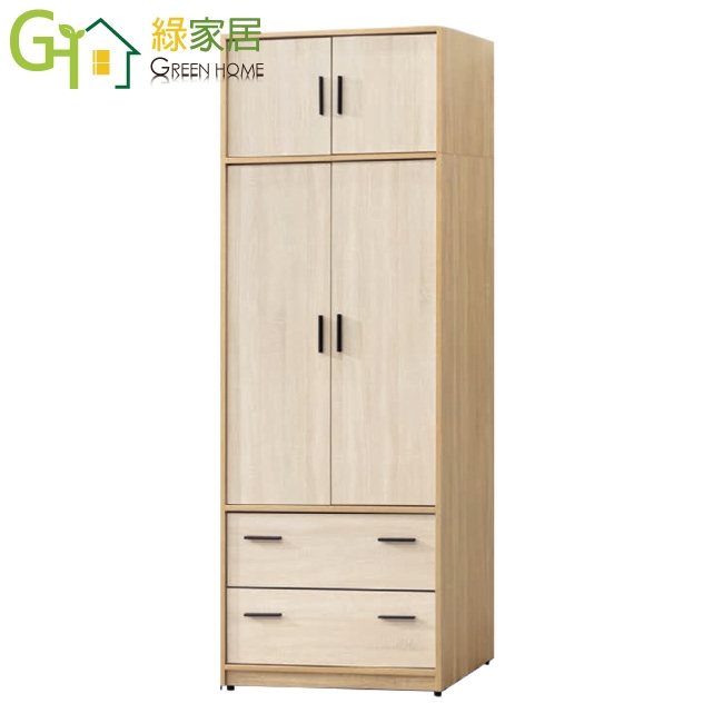 【綠家居】羅比斯2.5尺四門二抽衣櫃加高組合