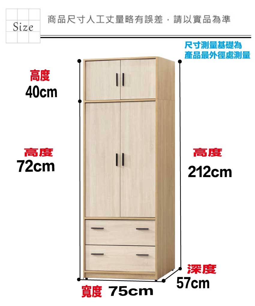 尺寸:(寬)75x(深)57x(高)212/公分