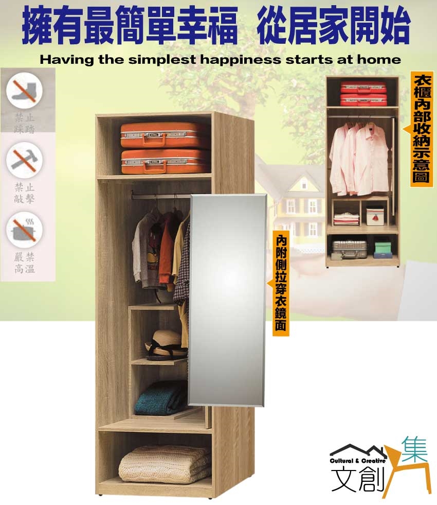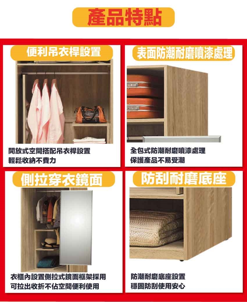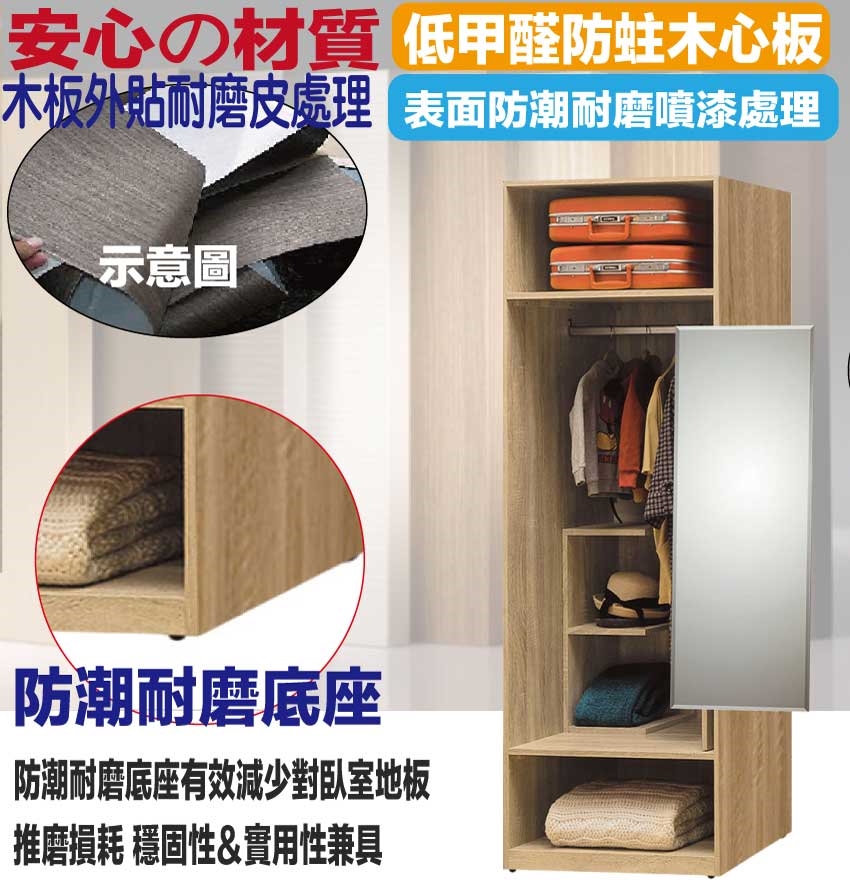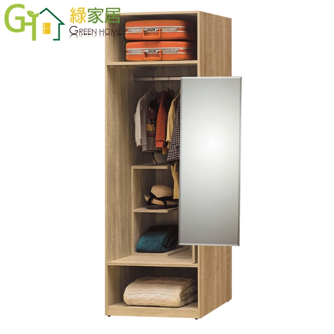★偏遠地區需額外加收運費,下標請先問與答詢問★ ★下訂前注意 由於商品流動較快,下訂前請先詢問是否有貨在下訂喔~★ 【綠家居】艾羅2.5尺開放式功能衣櫃(內含側拉鏡面) 橡木紋色系+現代簡約風格+安心材質製造,使用放心+搭配居家更便利,整體採用防蛀木心板+防潮耐磨底座+強化玻璃鏡面等安心材質製造搭配外層採用防潮耐磨噴漆處理 ,採用吊衣桿+內含側拉鏡面+開放層格等收納空間設計,全由專人配送到家,專業安心服務,替你省下更多時間!