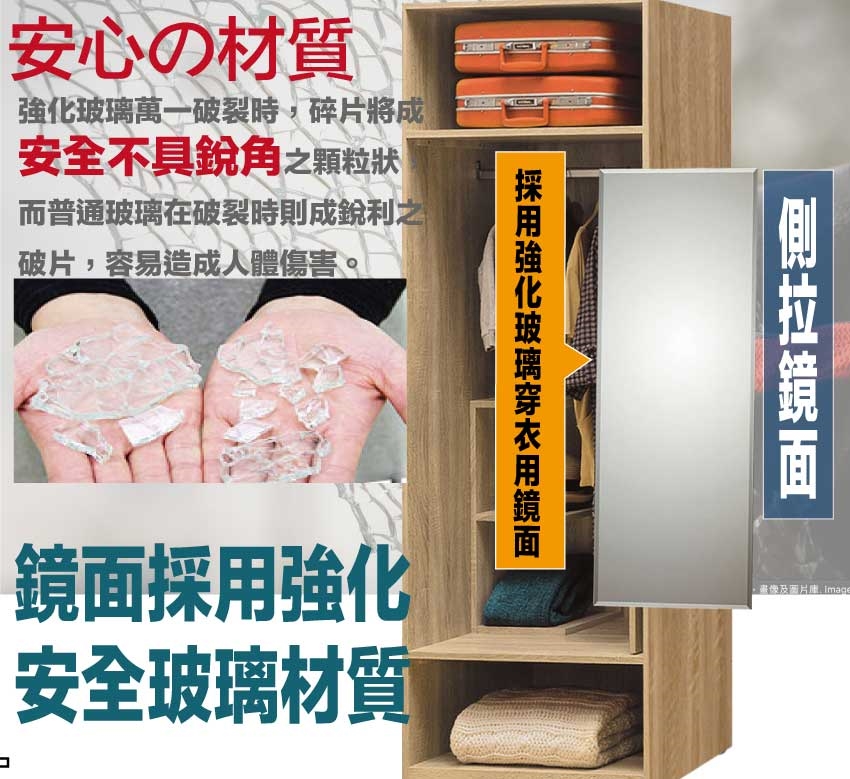 防蛀木心板+防潮耐磨底座+強化玻璃鏡面等安心材質製造