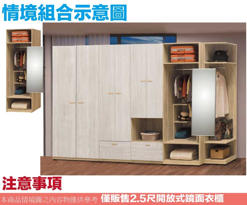- ◆產品名稱:【綠家居】艾羅2.5尺開放式功能衣櫃(內含側拉鏡面)