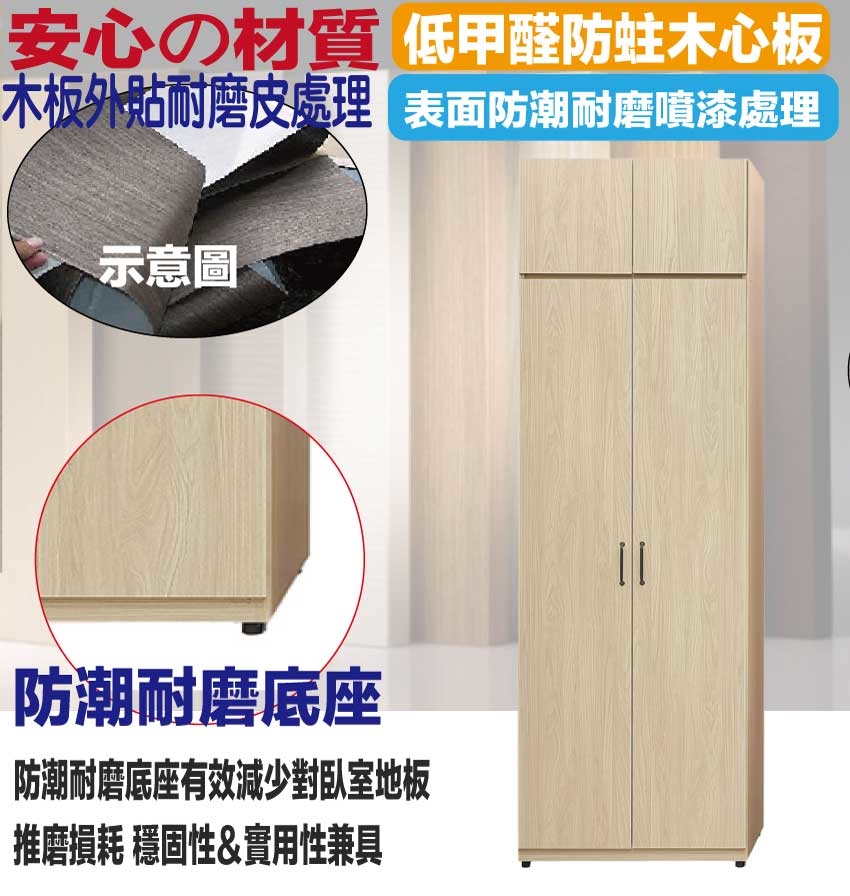 材質:防蛀木心板+防潮耐磨底座(可調高低水平)+防夾手緩衝門片五金 -