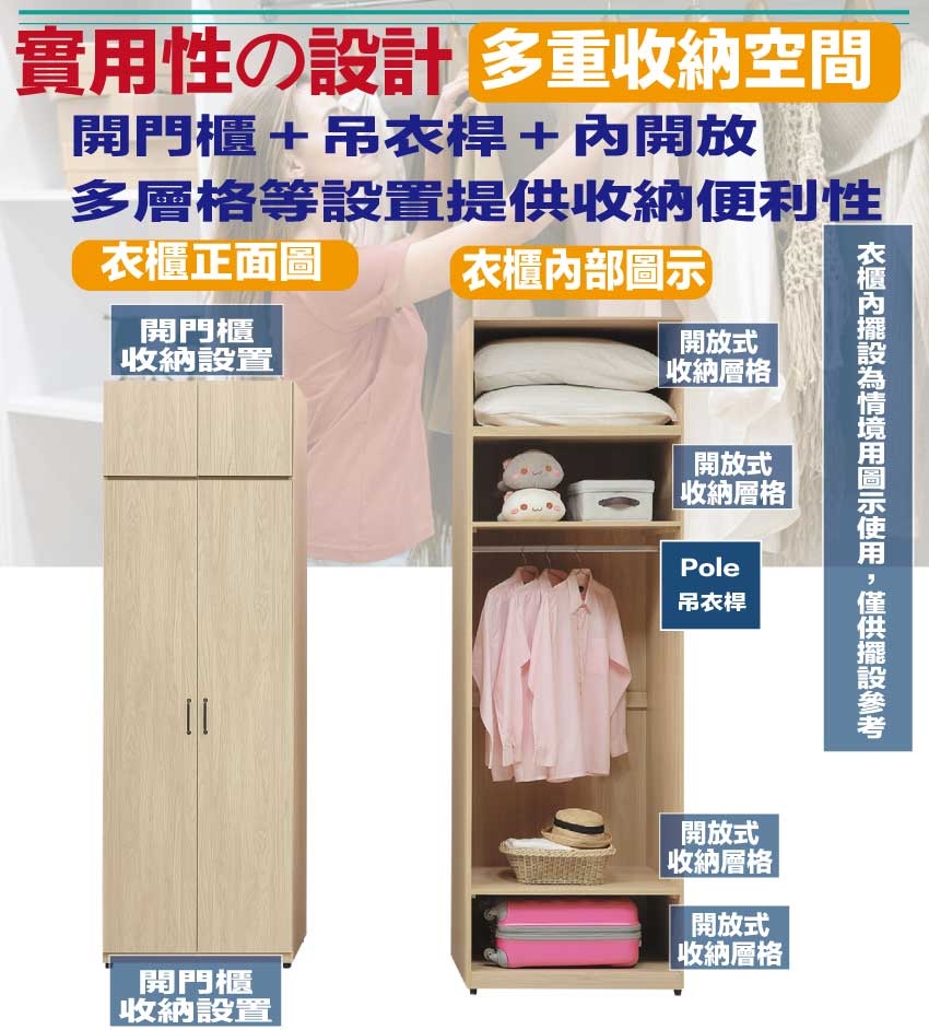 開門櫃+吊衣桿+內開放層格