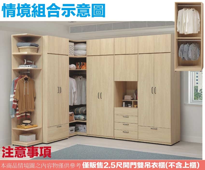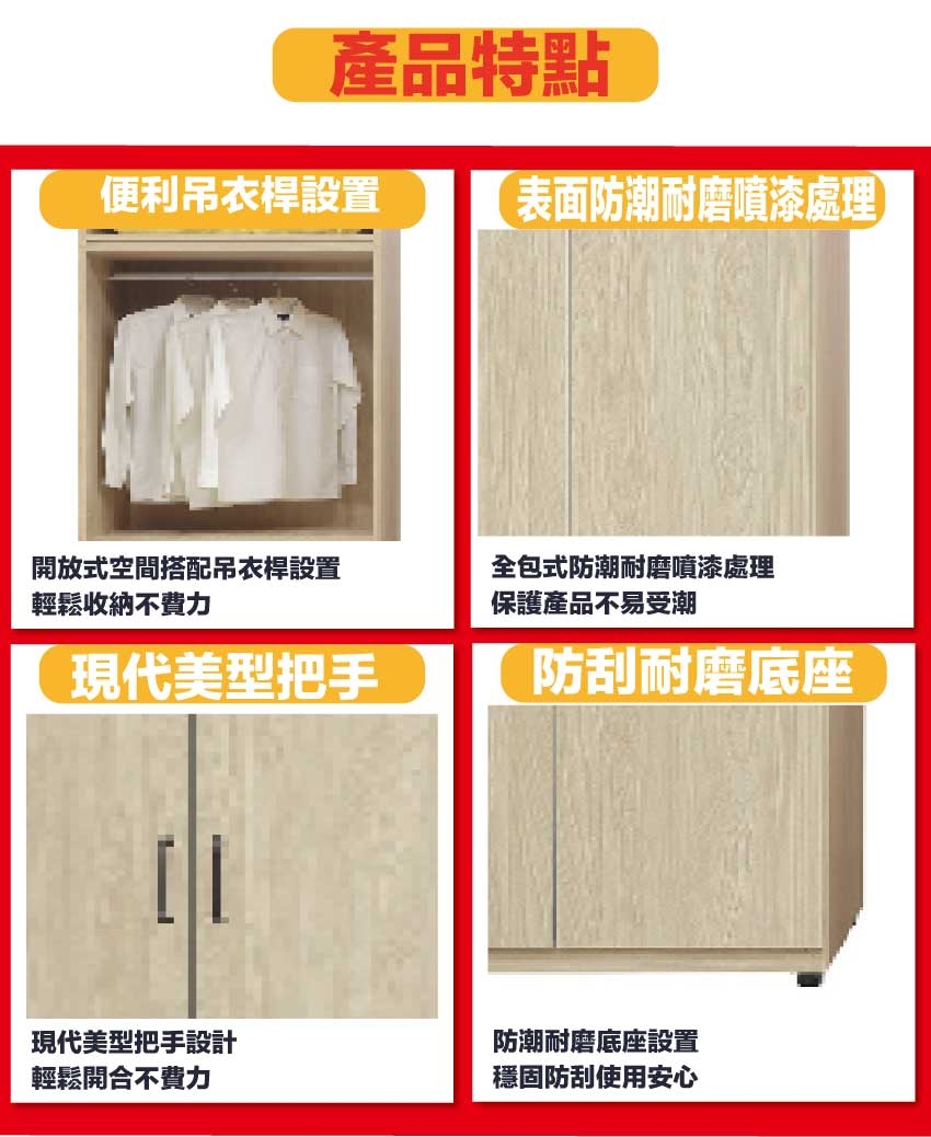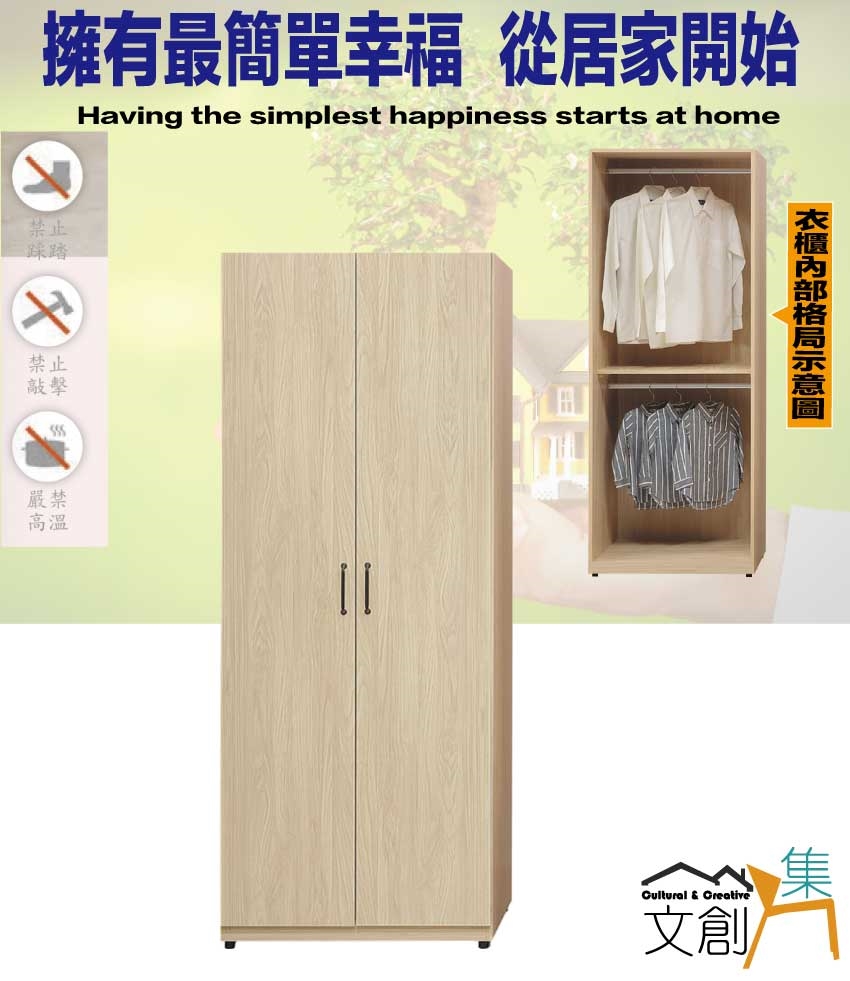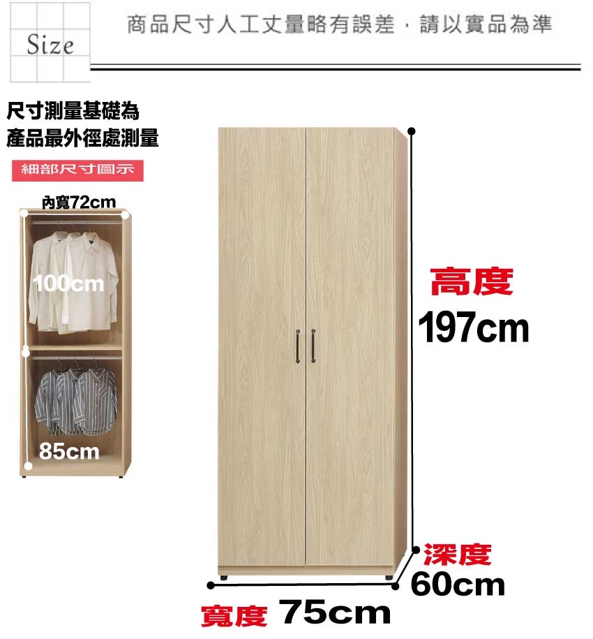 - ◆產品名稱:【綠家居】艾珊2.5尺二門內雙吊衣櫃