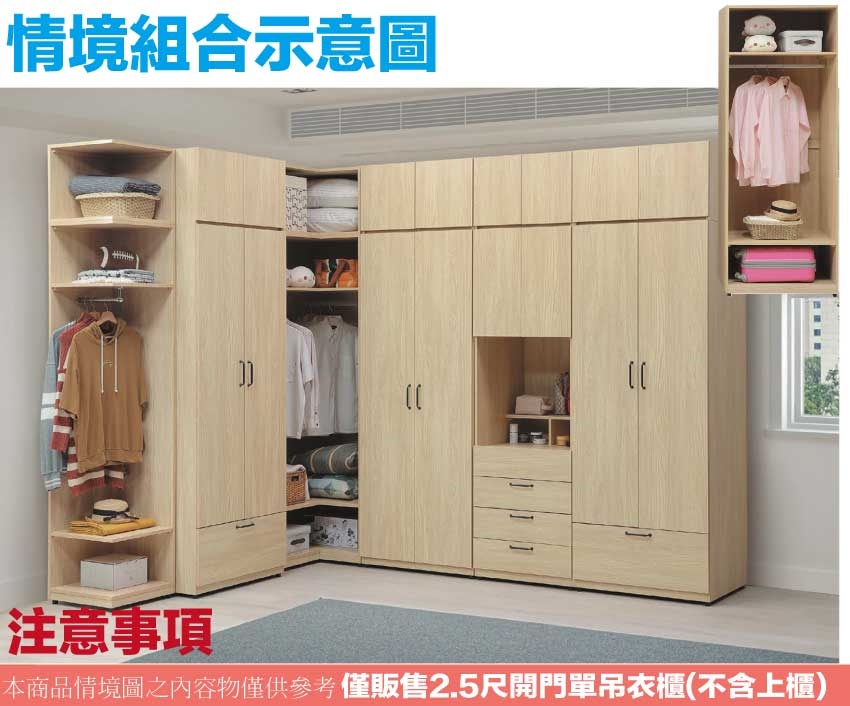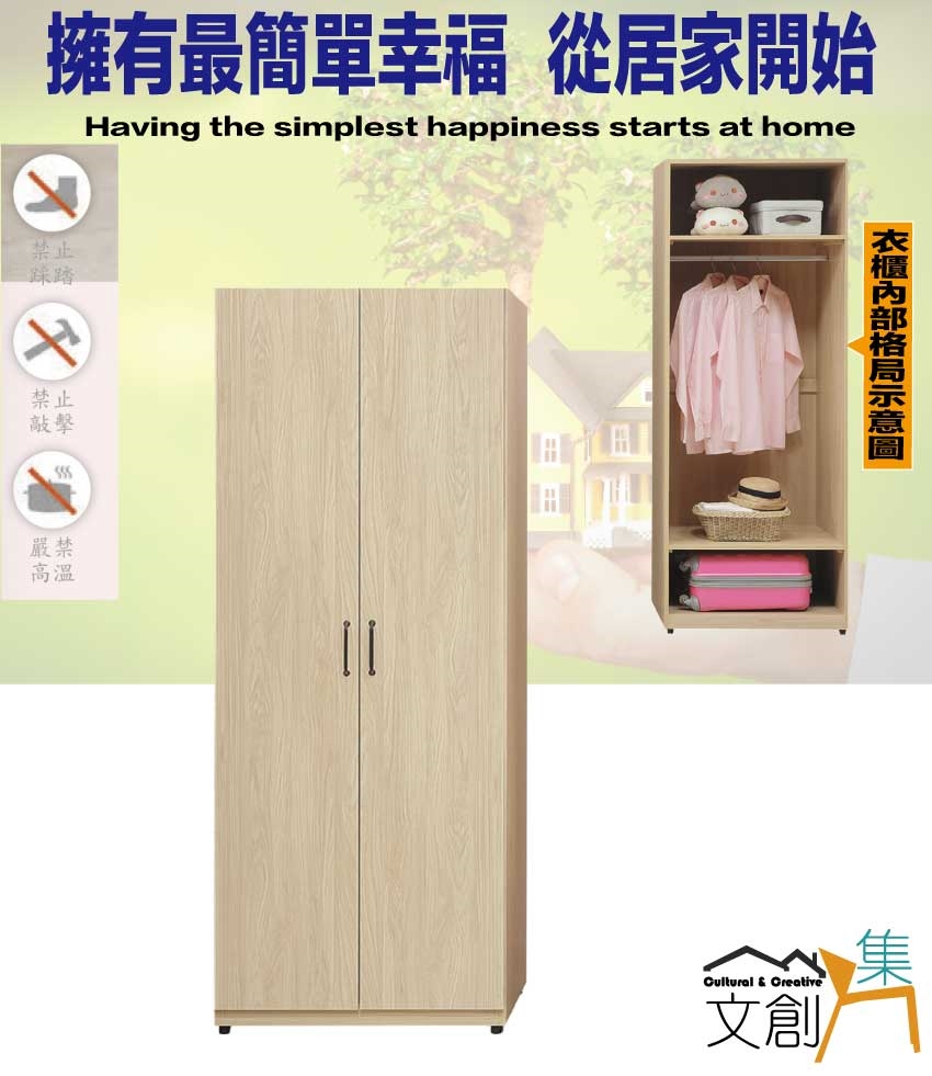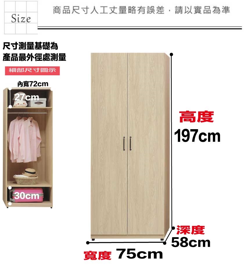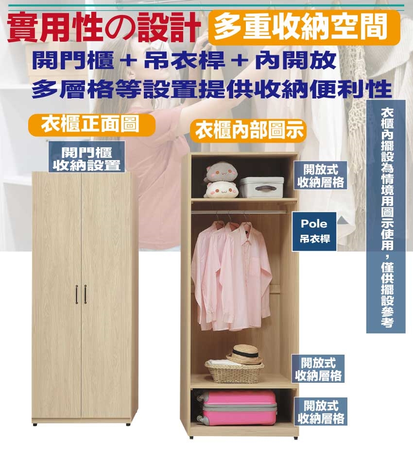 - ◆產品名稱:【綠家居】艾珊2.5尺二門內單吊多格衣櫃