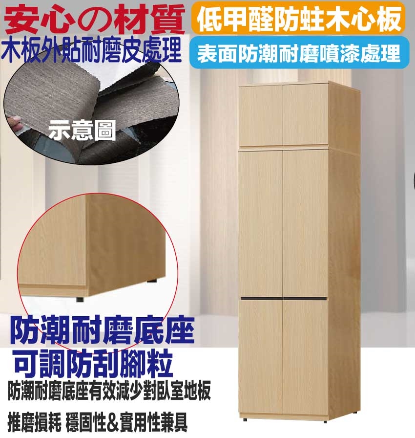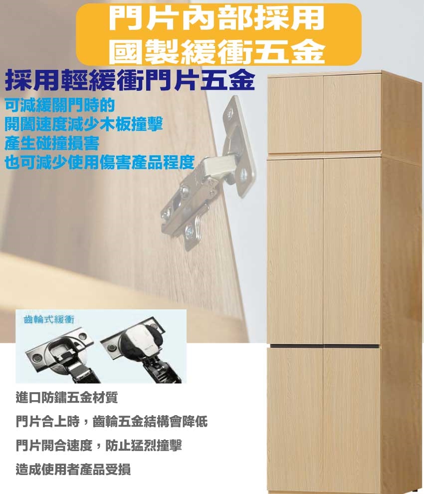材質:防蛀木心板+防潮耐磨底座(可調高低水平)+防夾手緩衝門片五金