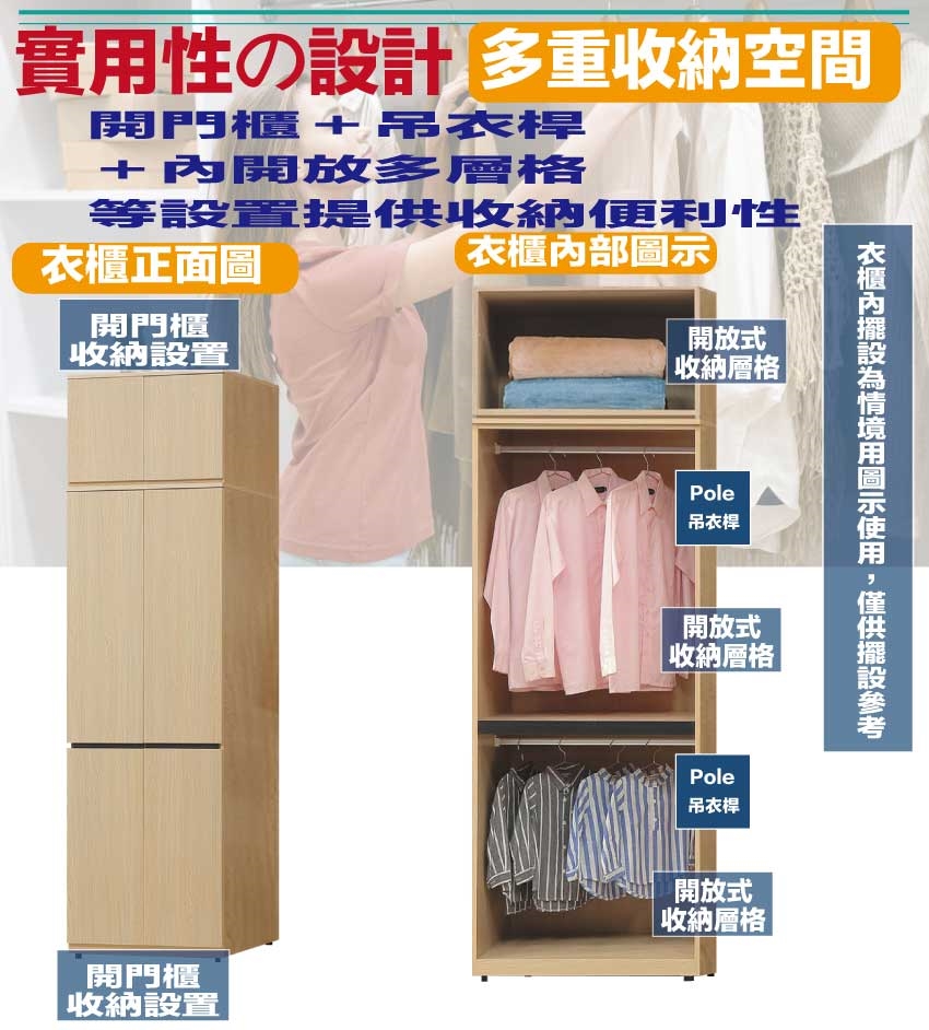 開門櫃+吊衣桿+內開放層格