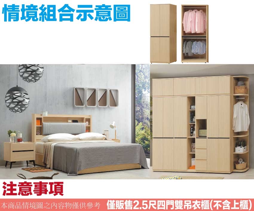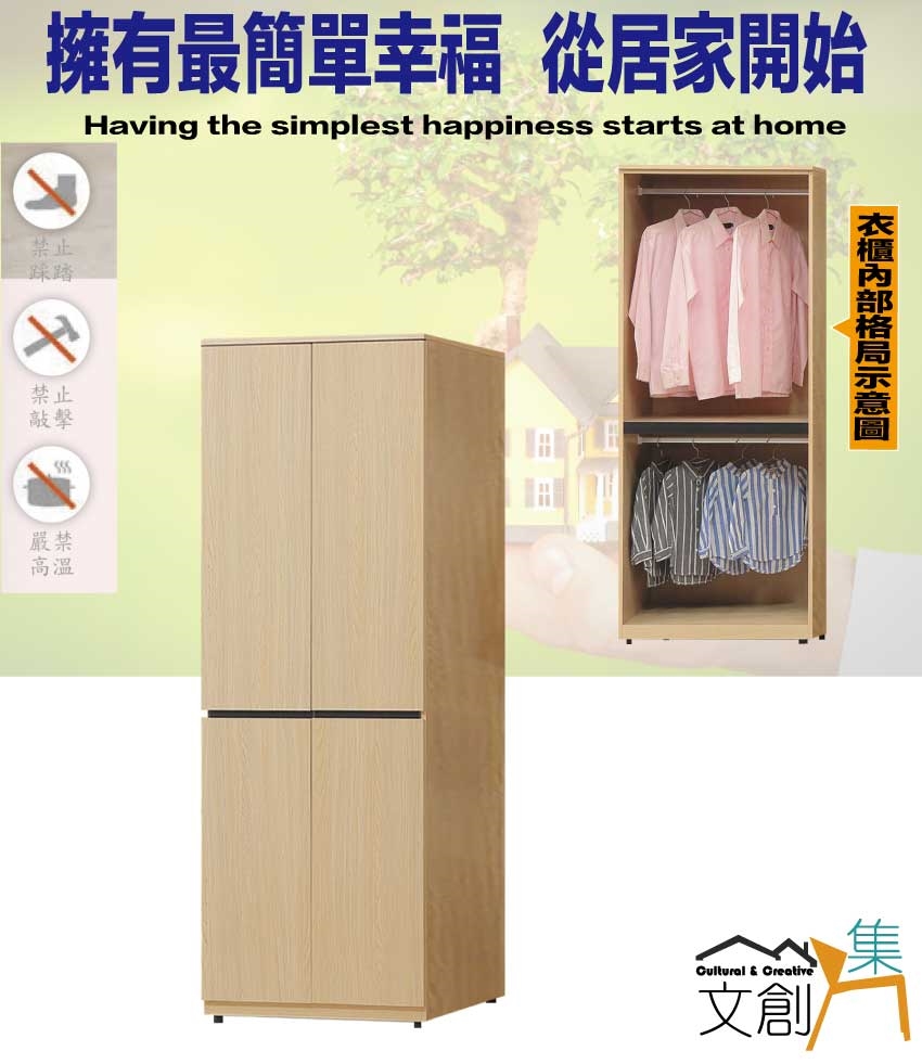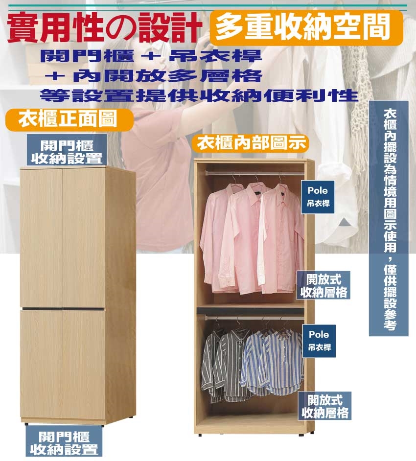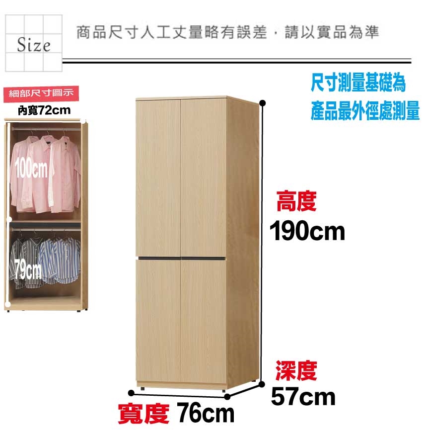 - ◆產品名稱:【綠家居】維珊2.5尺四門內雙吊衣櫃