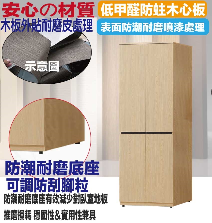 防蛀木心板+防潮耐磨底座(可調高低水平)+防夾手緩衝門片五金等安心材質製造