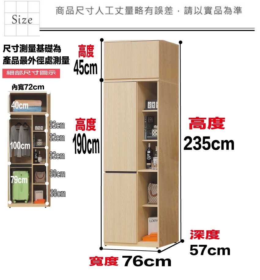 - 尺寸:(寬)76x(深)57x(高)235/公分