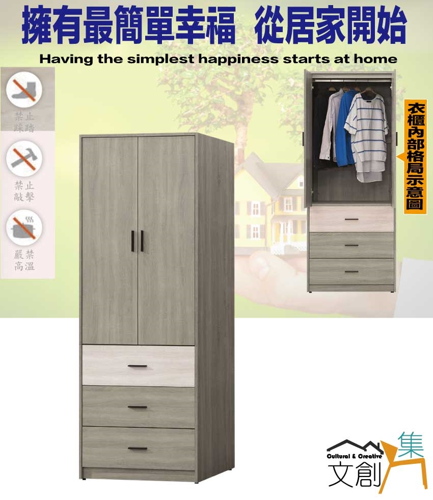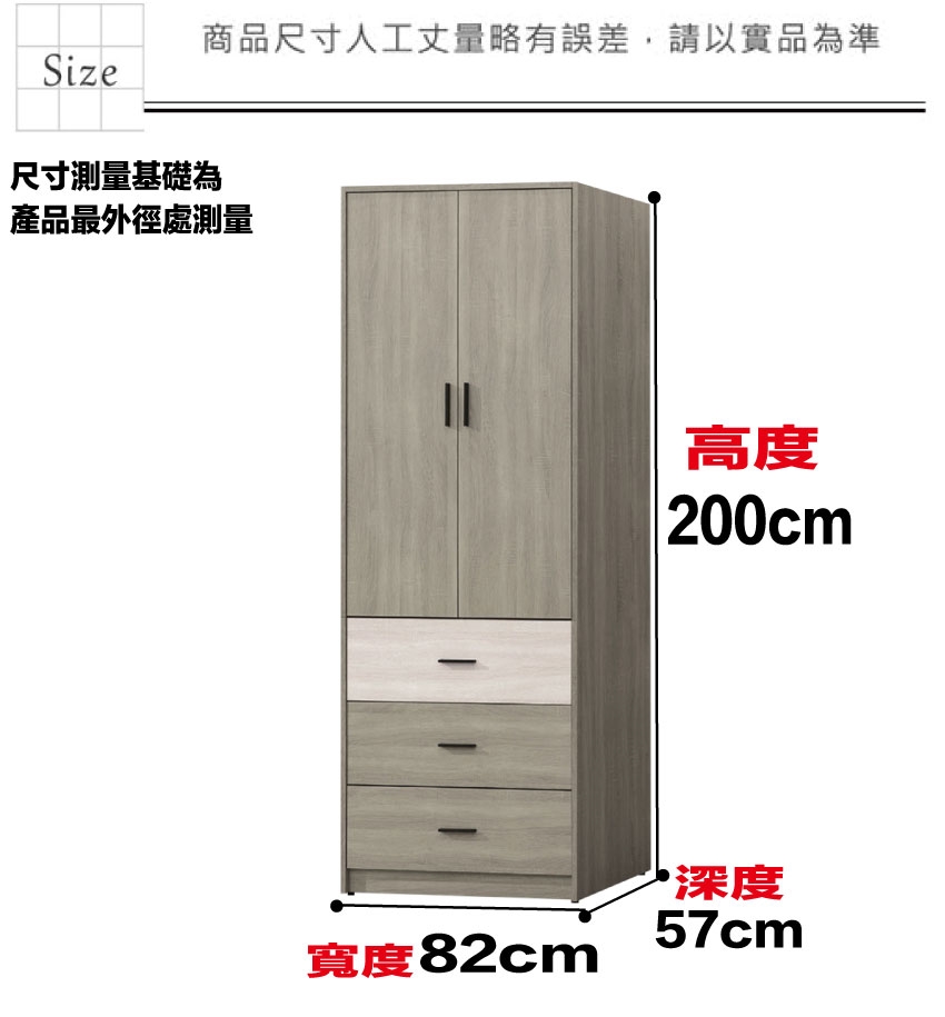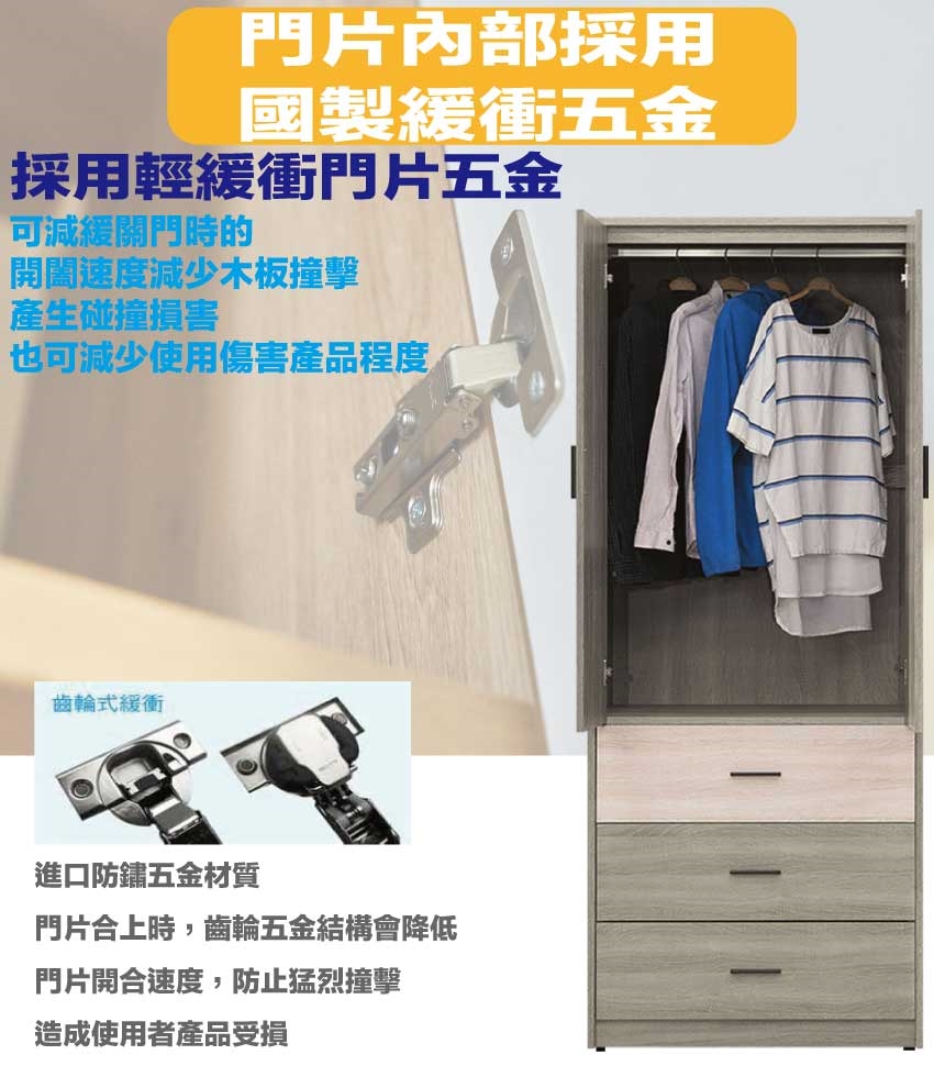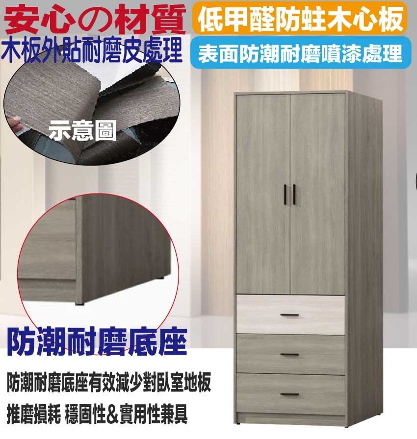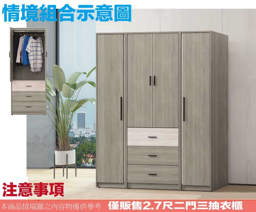 - ◆產品名稱:【綠家居】海維2.7尺二門三抽衣櫃