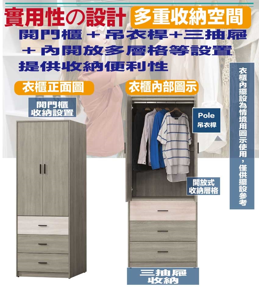 開門櫃+吊衣桿+三抽屜
