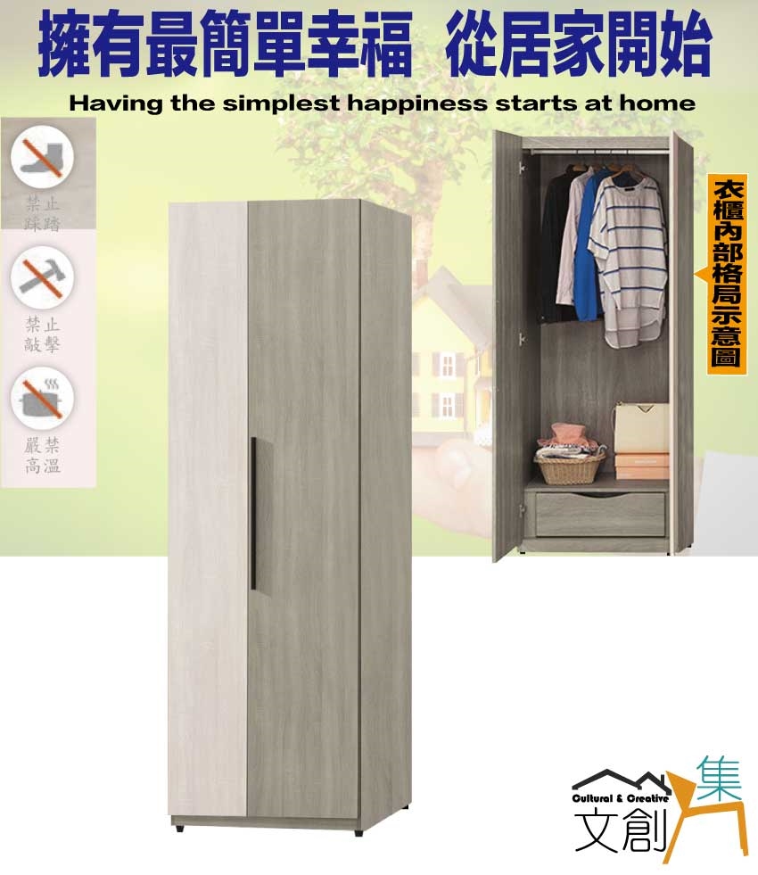 - ◆產品名稱:【綠家居】海珊2.5尺二門內單抽衣櫃