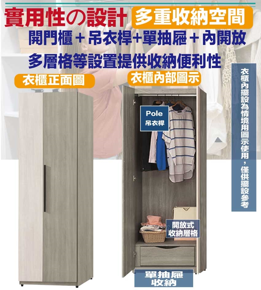 開門櫃+吊衣桿+單抽屜