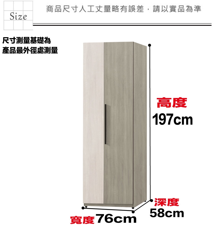 - 尺寸:(寬)76x(深)58x(高)197/公分