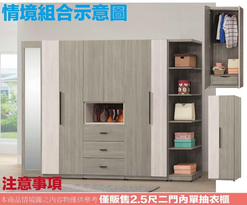 【綠家居】海珊2.5尺二門內單抽衣櫃