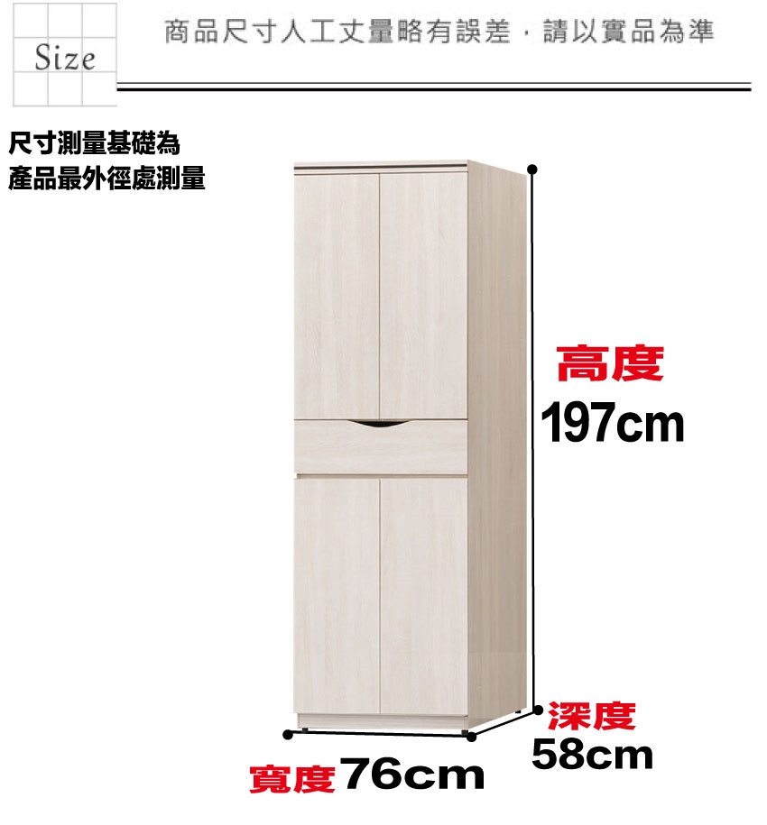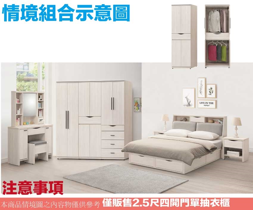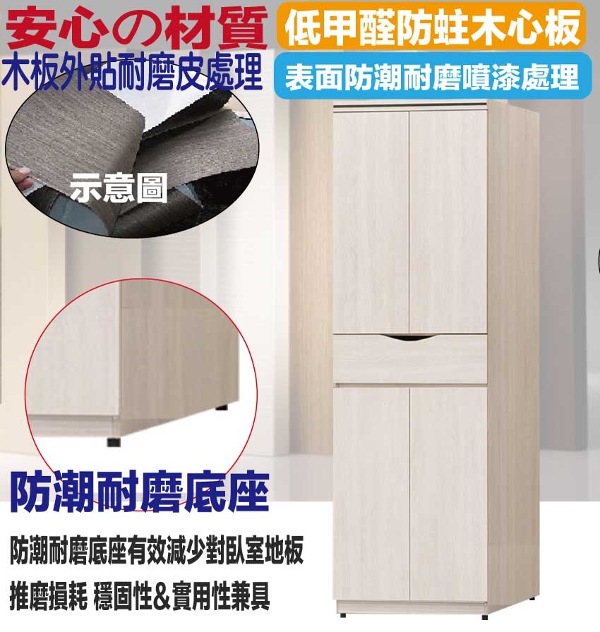 - ◆產品名稱:【綠家居】海島2.5尺四門單抽衣櫃