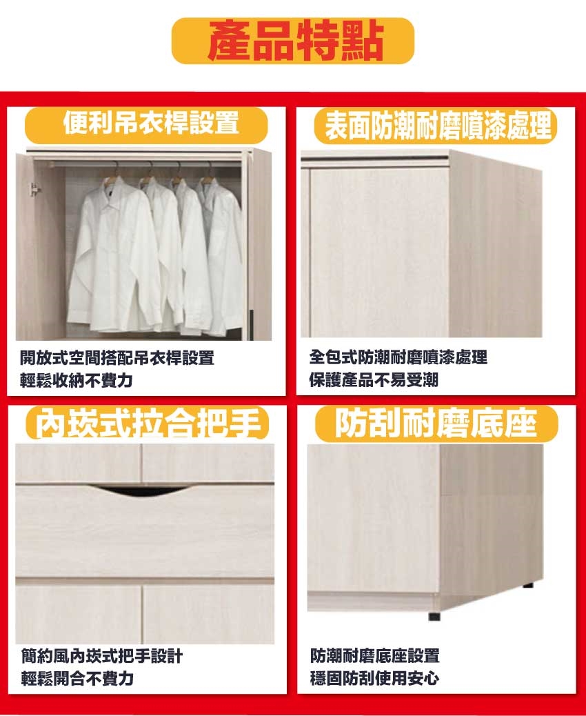 材質:防蛀木心板+防潮耐磨底座(可調高低水平)+防夾手緩衝門片五金