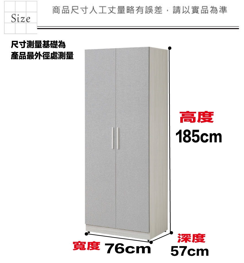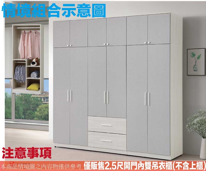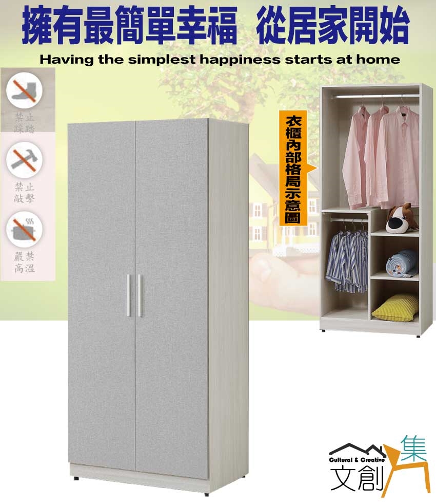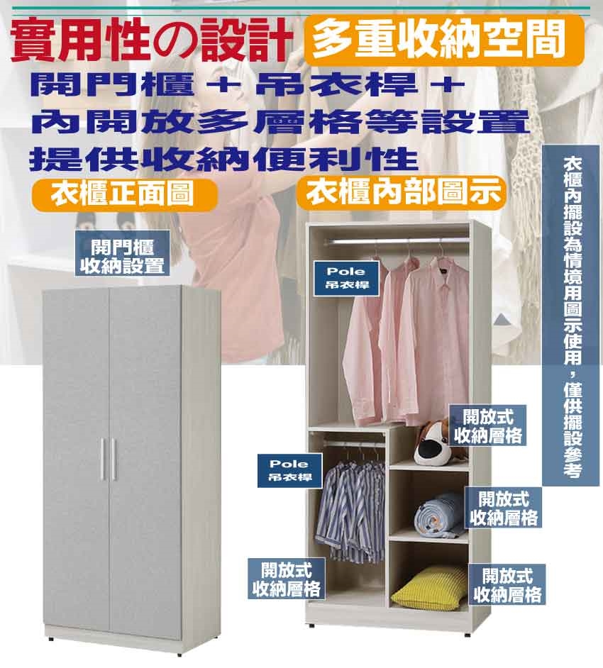 - 產品名稱:【綠家居】菲可2.5尺二門內雙吊桿衣櫃