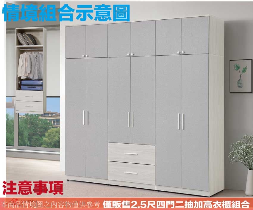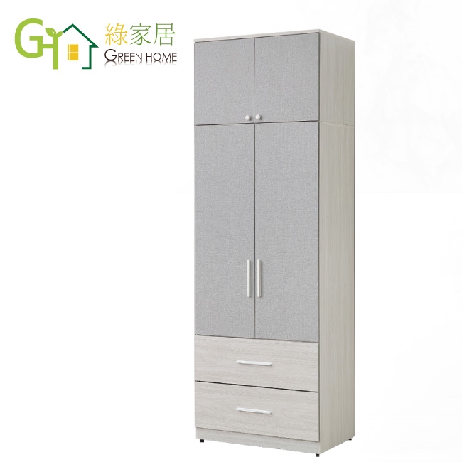 【綠家居】菲可2.5尺四門二抽加高衣櫃組合