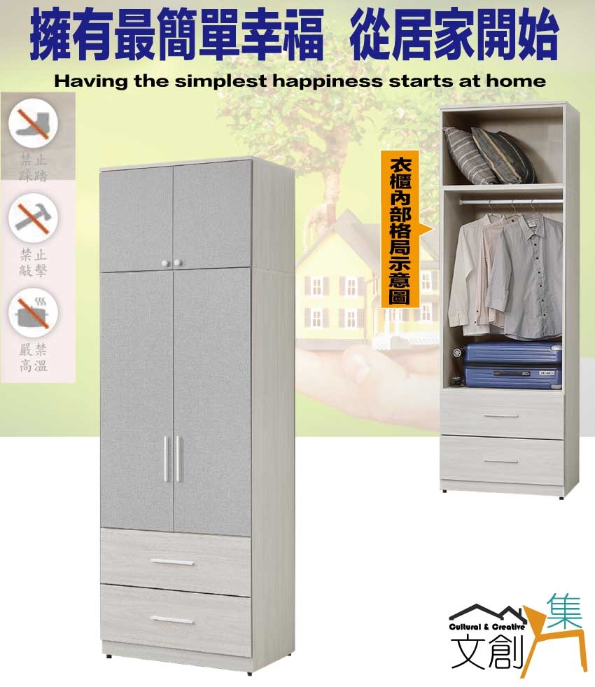 - 產品名稱:【綠家居】菲可2.5尺四門二抽加高衣櫃組合