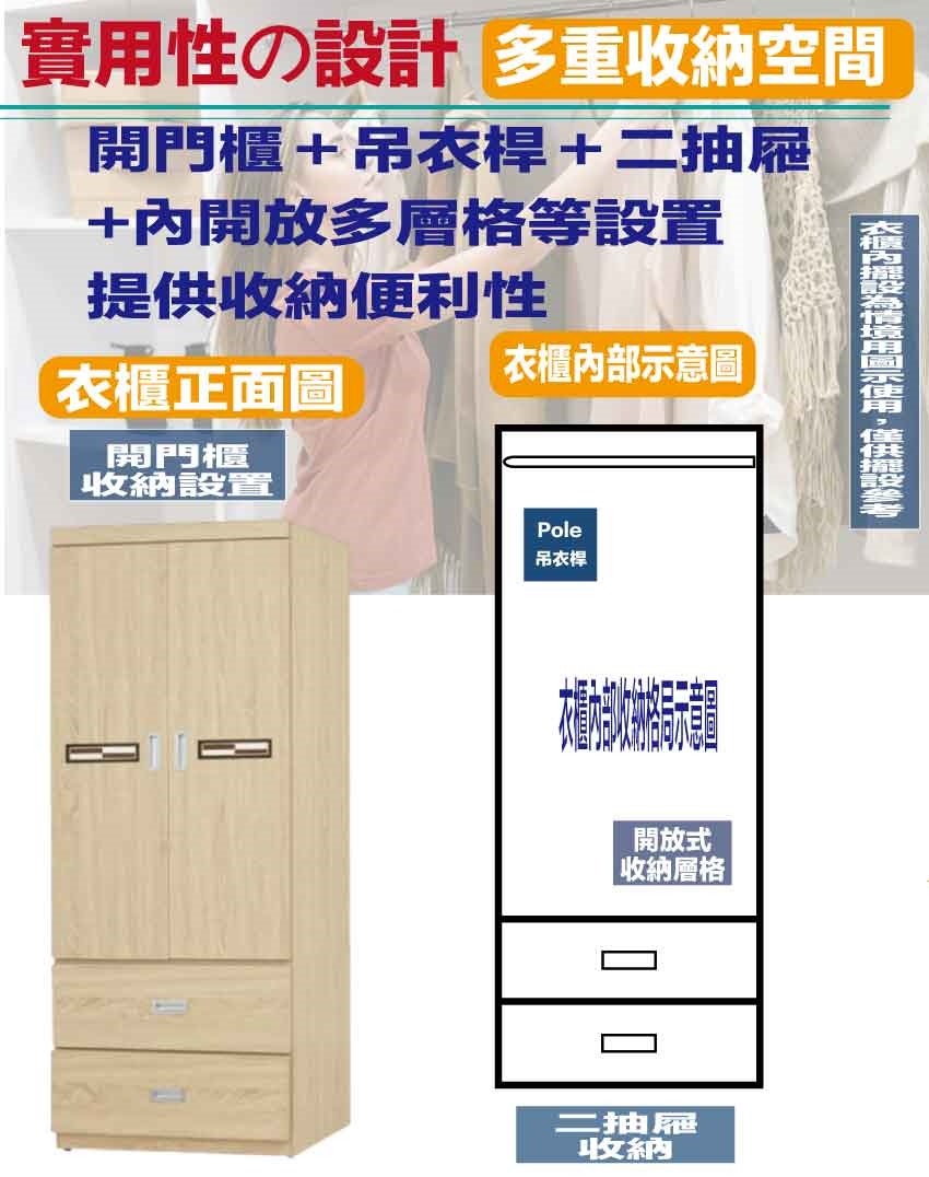 開門櫃+吊衣桿+二抽屜