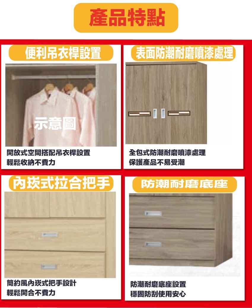 材質:防蛀木心板+防潮耐磨底座+五金滑軌結構+防夾手緩衝門片五金