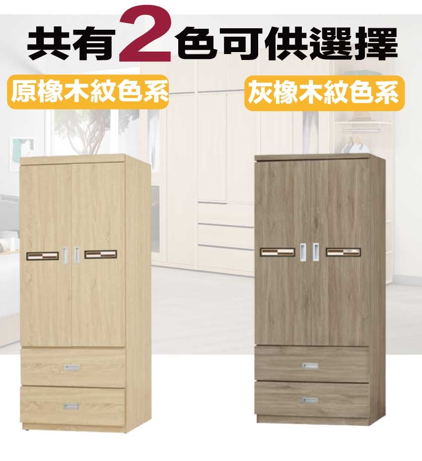 【綠家居】賽博斯2.6尺二門二抽衣櫃(二色可選)