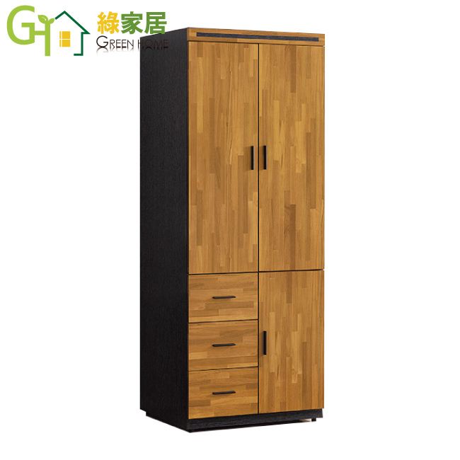 【綠家居】謝米克 時尚2.6尺三門三抽衣櫃/收納櫃(吊衣桿+三抽屜+穿衣鏡)