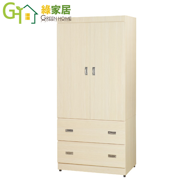 【綠家居】藍爾 時尚2.7尺二門衣櫃/收納櫃(四色可選+二抽屜+吊衣桿)