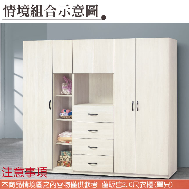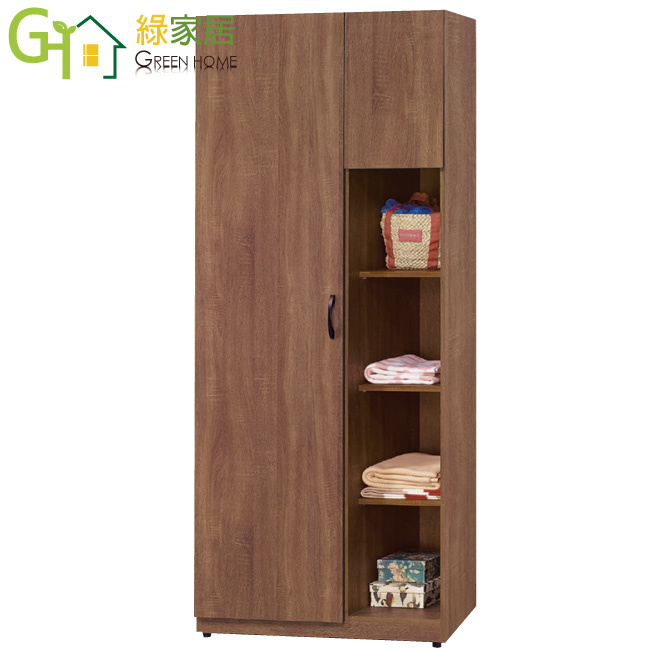 【綠家居】泰格 時尚2.6尺木紋開門式衣櫃 (二色可選+二吊桿 )