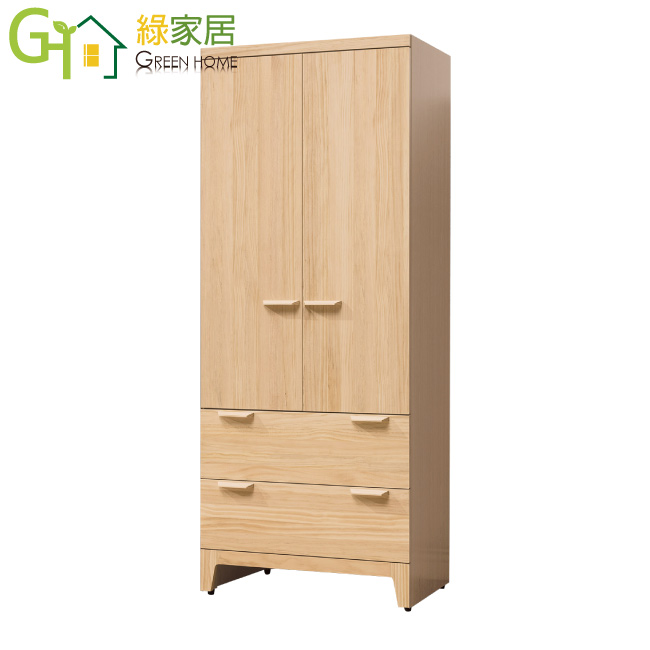 【綠家居】艾爾德 時尚2.7尺實木開門衣櫃/收納櫃(吊衣桿+二抽屜)