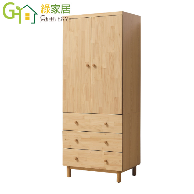 【綠家居】謝米德 時尚2.7尺實木開門衣櫃/收納櫃(吊衣桿+三抽屜)