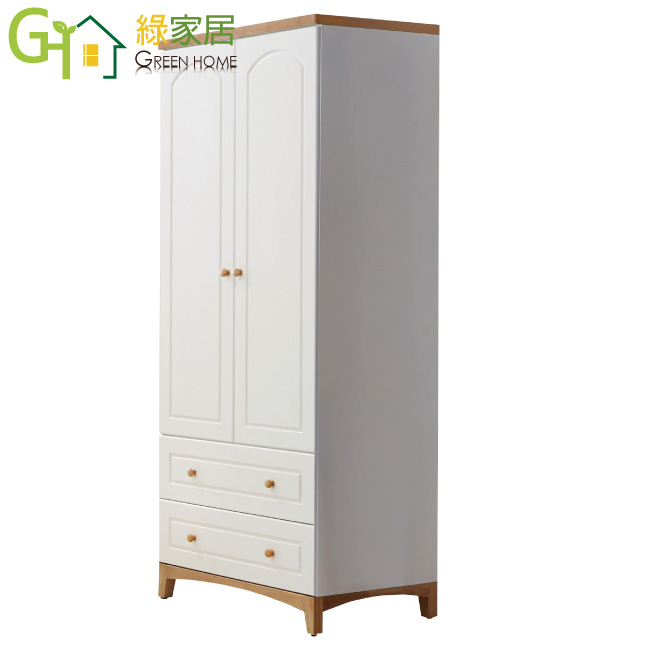 【綠家居】布里斯 時尚2.7尺木紋雙色開門式衣櫃(雙抽屜+單吊桿+開放層格)