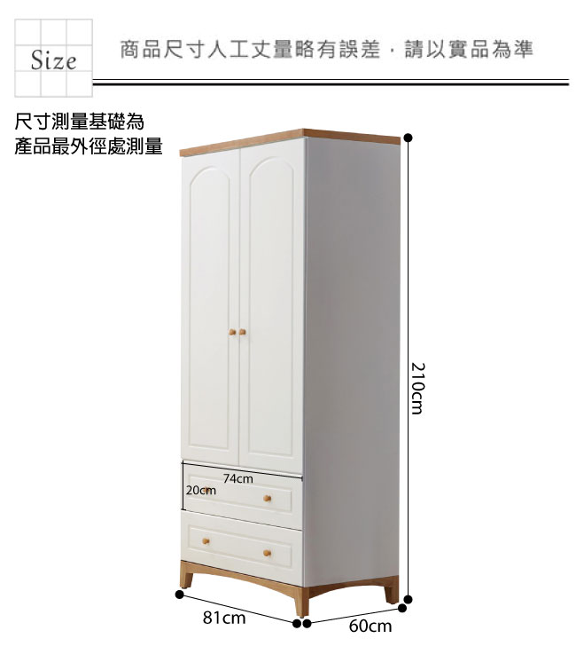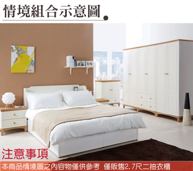 ◆產品名稱:【綠家居】布里斯 時尚2.7尺木紋雙色開門式衣櫃(雙抽屜+單吊桿+開放層格)