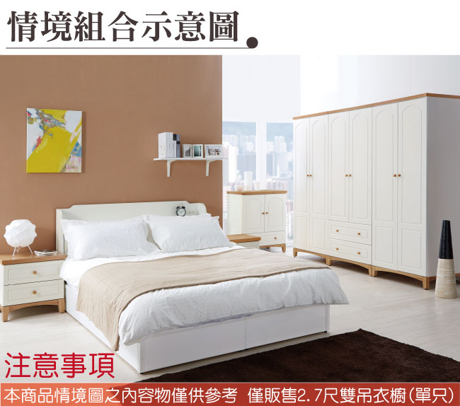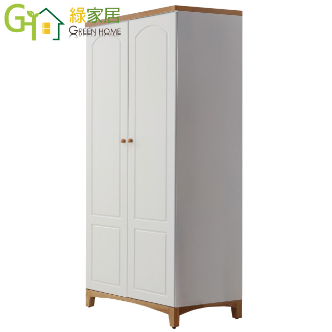 ◆產品名稱:【綠家居】布里斯 時尚2.7尺木紋雙色開門式衣櫃(雙吊桿+開放層格)