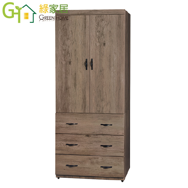 【綠家居】普可 時尚2.7尺二門三抽衣櫃/收納櫃