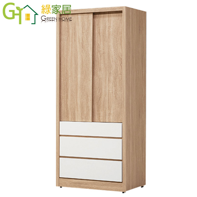 【綠家居】柏克恩 現代2.7尺推門三抽衣櫃/收納櫃