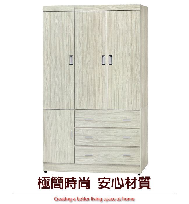 【綠家居】維亞 現代3.9尺四門三抽衣櫃/收納櫃