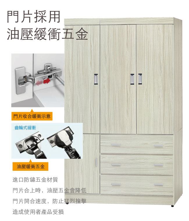 商品介紹 | 【綠家居】維亞 現代3.9尺四門三抽衣櫃/收納櫃 雪松木紋色系+現代簡約風格+安心材質製造,整體採用防蛀木心板+防潮MDF板材+五金滑軌結構+防夾手緩衝門片五金等安心材質製造,外層採用優利坦全包式耐磨噴漆處理搭配開門櫃+三抽屜+內開放式層格等收納設計,全由專人配送到家,專業安心服務,替你省下更多時間! 【商品特色】 雪松木紋色系+現代簡約風格+安心材質製造,使用放心+搭配居家更便利 採用防蛀木心板+防潮MDF板材+五金滑軌結構+防夾手緩衝門片五金等安心材質製造 採用開門櫃+三抽屜+內開放式層格等收納設計 此商品不需要DIY組立,此商品為組立後之成品 品質保證、專業設計、貼心服務 全由專人配送到家,專業安心服務,替您省下更多時間 |