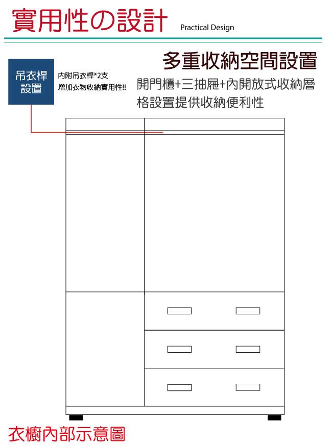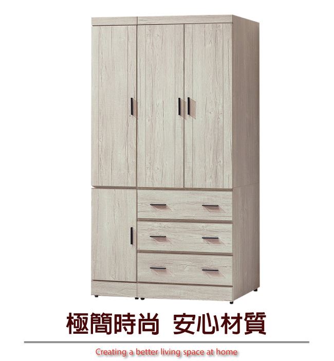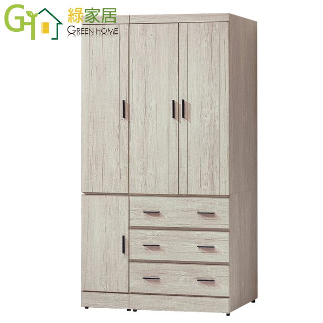 【綠家居】德里 現代3.8尺四門三抽衣櫃/收納櫃
