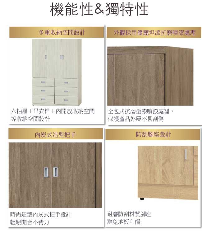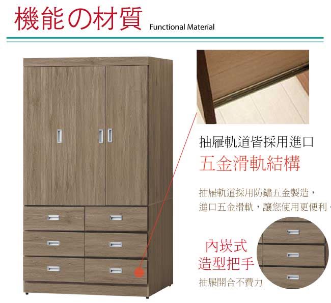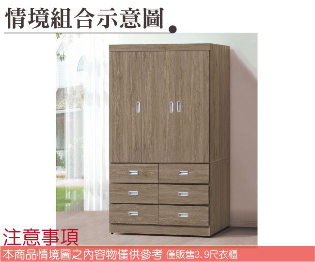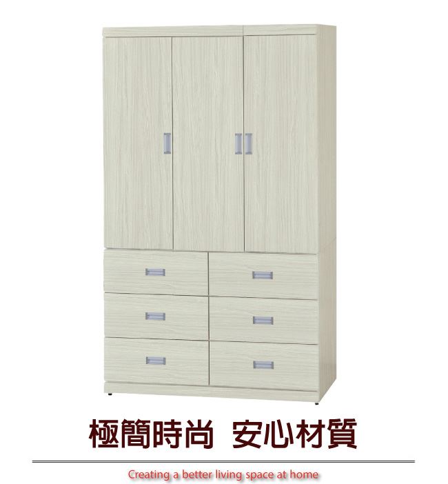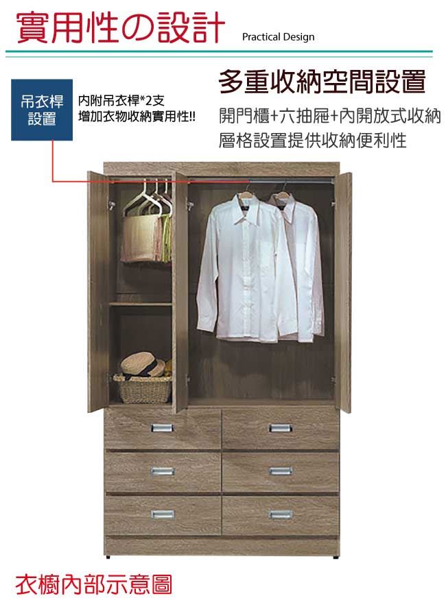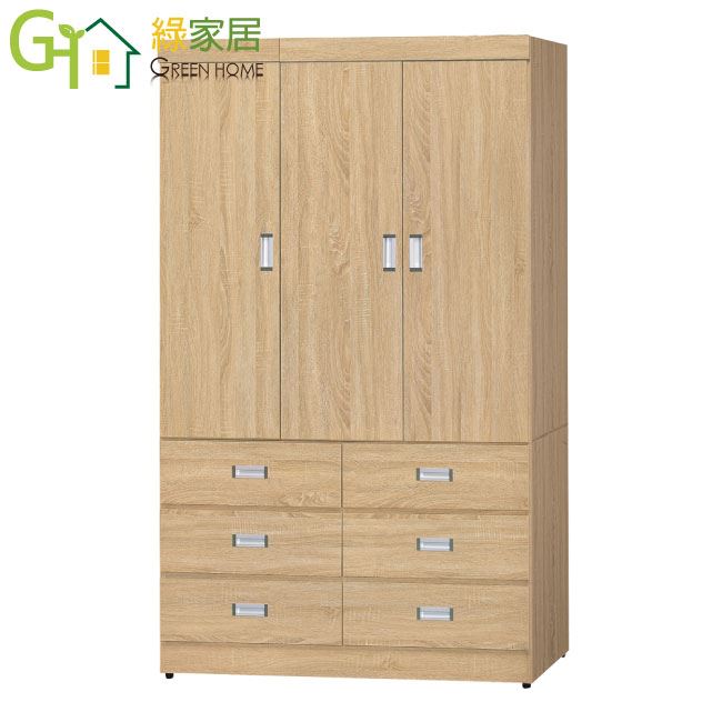 【綠家居】向佐 時尚3.9尺三門六抽衣櫃(四色可選)