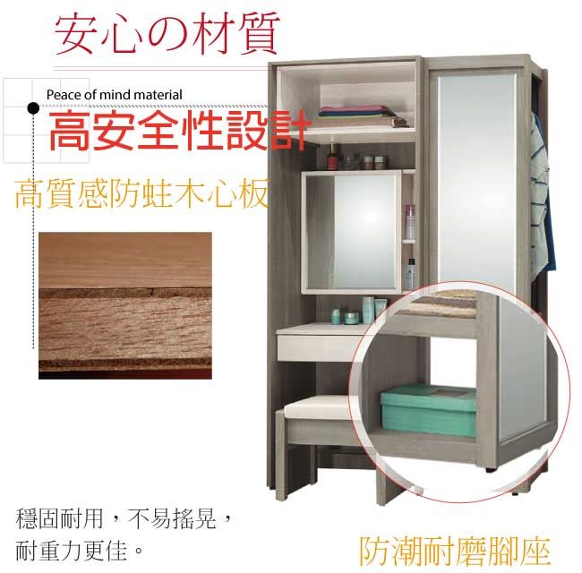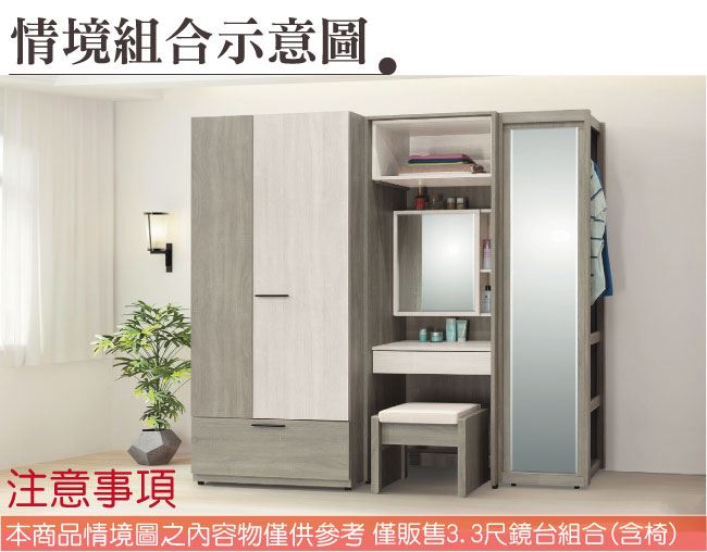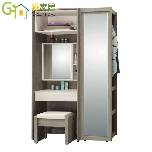 【綠家居】歐倫勒 時尚3.3尺雙鏡面鏡台衣櫃/收納櫃組合(含化妝椅+鏡台衣櫃+穿衣鏡面櫃)