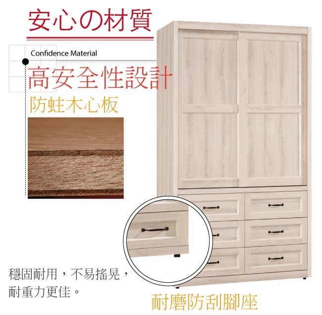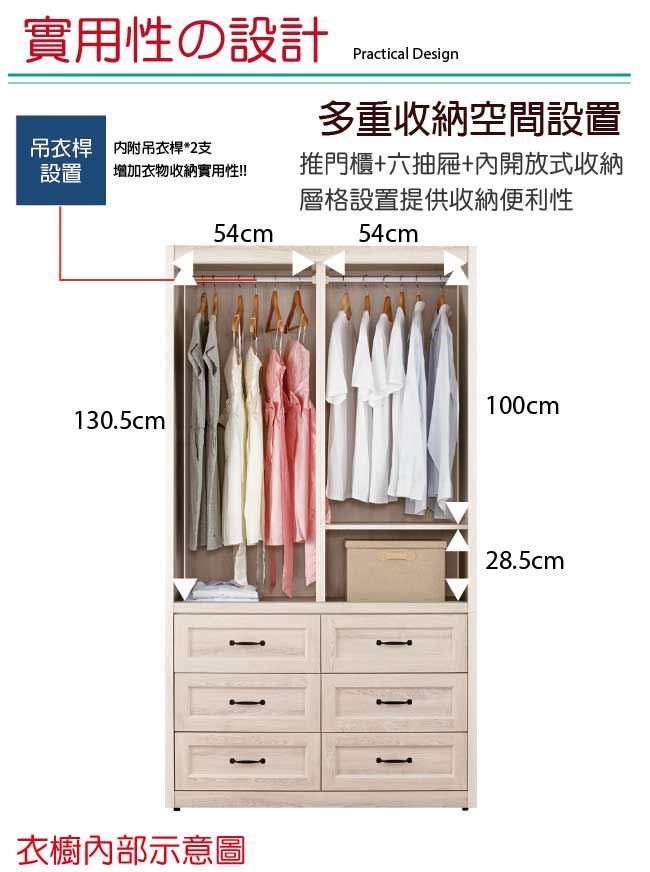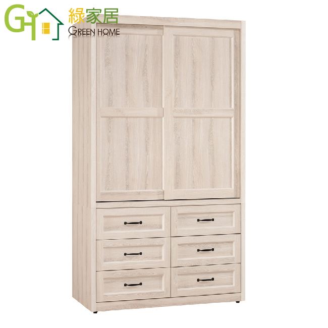 【綠家居】馬拉提 淺橡3.9尺推門六抽衣櫃