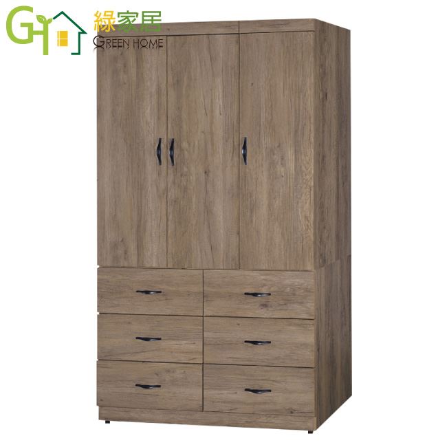 【綠家居】瑞典 時尚3.8尺三門六抽衣櫃/收納櫃