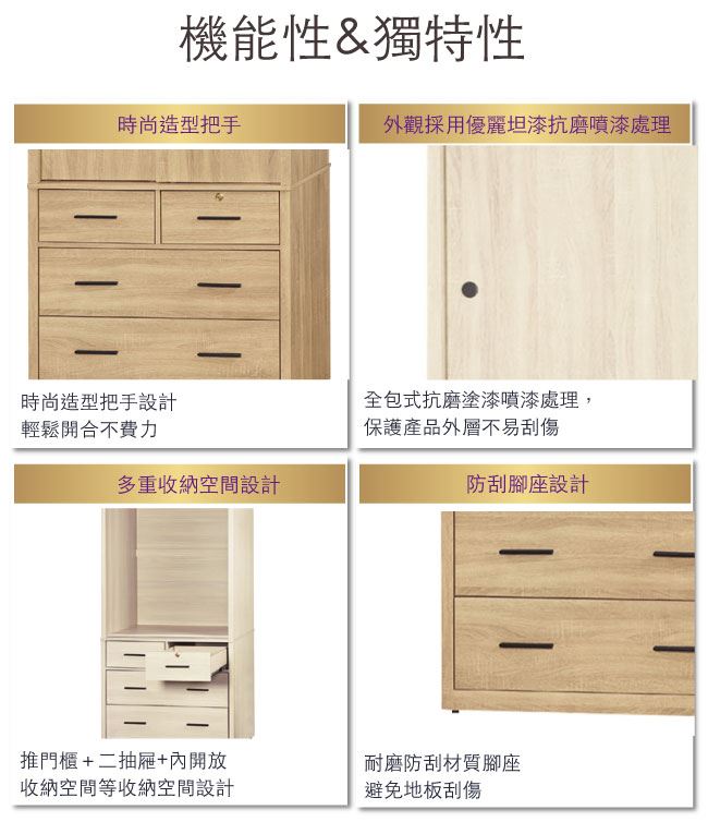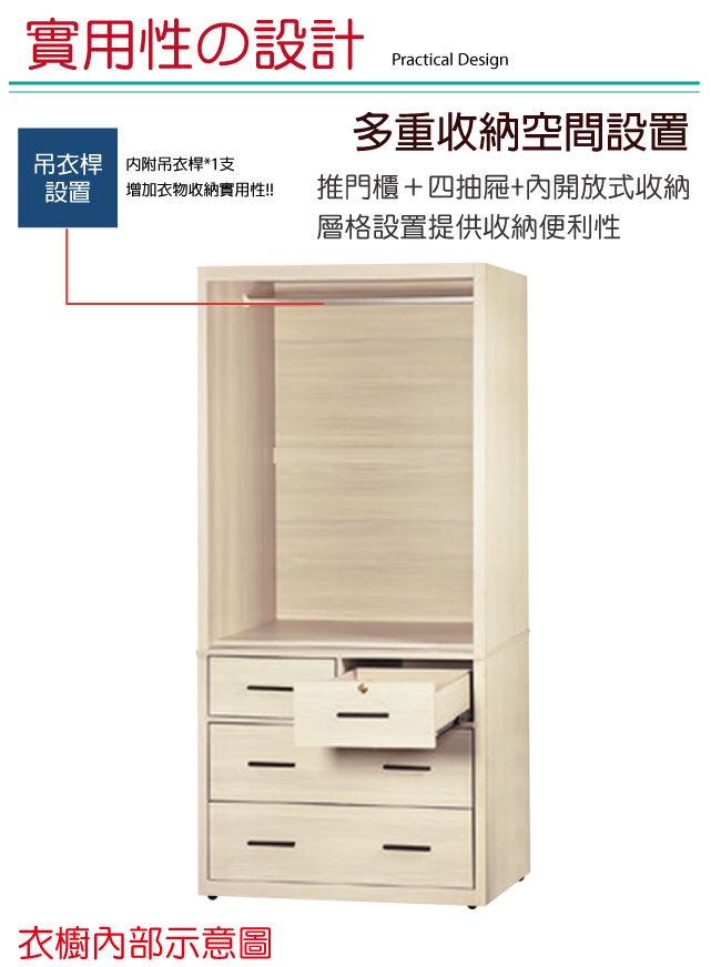 商品 介紹 | 【綠家居】阿斯馬 時尚3.2尺推門四抽衣櫃/收納櫃(二色可選) 二色可選+現代簡約風格+安心材質製造,整體採用防蛀木心板+五金滑軌結構+防潮耐磨腳座等安心材質製造,搭配採用推門櫃+吊衣桿+四抽屜+內開放式收納層格等收納空間設計,全由專人配送到家,專業安心服務,替你省下更多時間! 【商品特色】 二色可選+現代簡約風格+安心材質製造,使用放心+搭配居家更便利 採用防蛀木心板+五金滑軌結構+防潮耐磨腳座等安心材質製造 採用推門櫃+吊衣桿+四抽屜+內開放式收納層格等收納空間設計 此商品不需要DIY組立,此商品為組立後之成品 品質保證、專業設計、貼心服務 全由專人配送到家,專業安心服務,替您省下更多時間 |