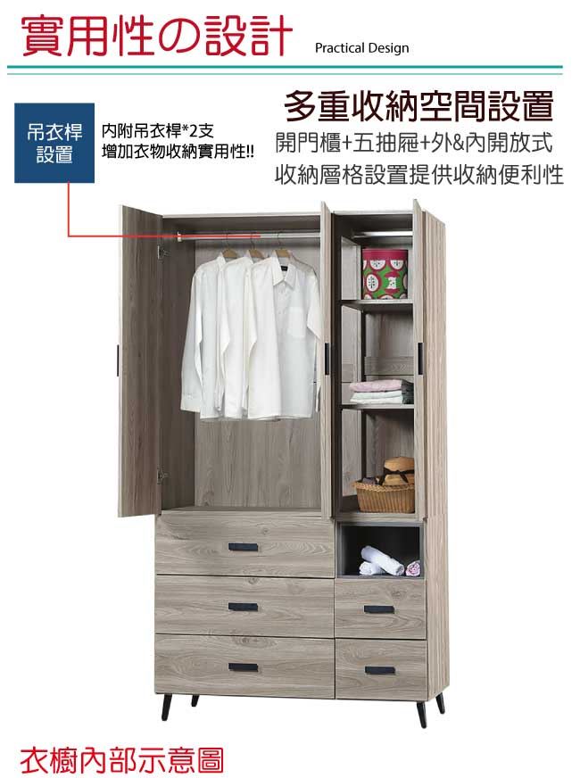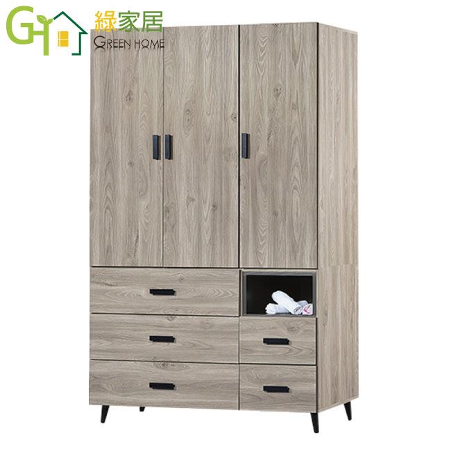 【綠家居】佩芮 時尚3.9尺三門五抽衣櫃/收納櫃