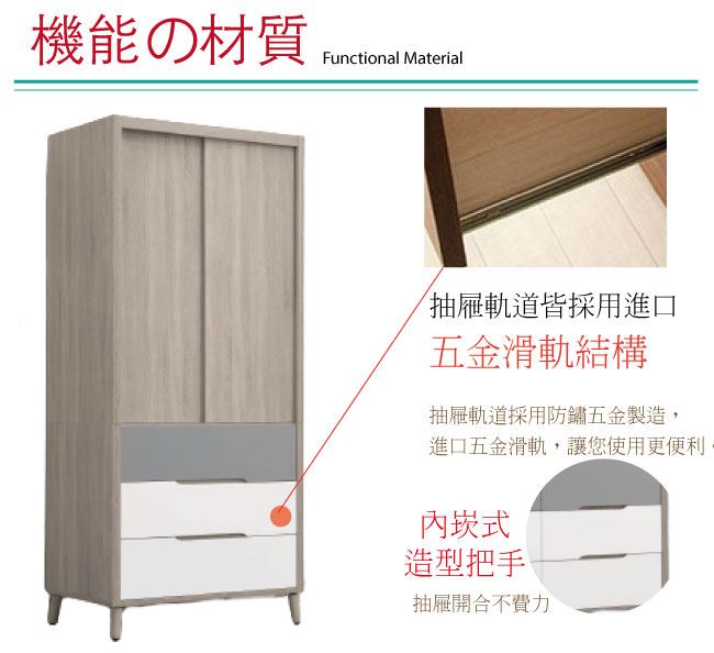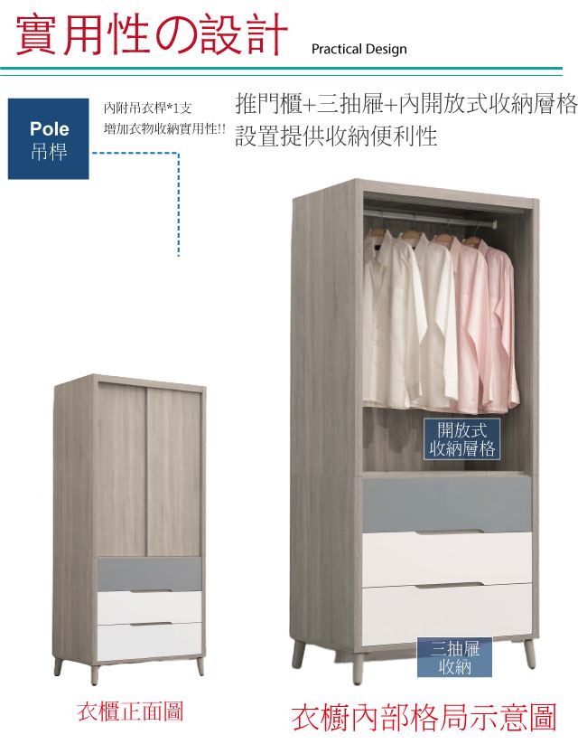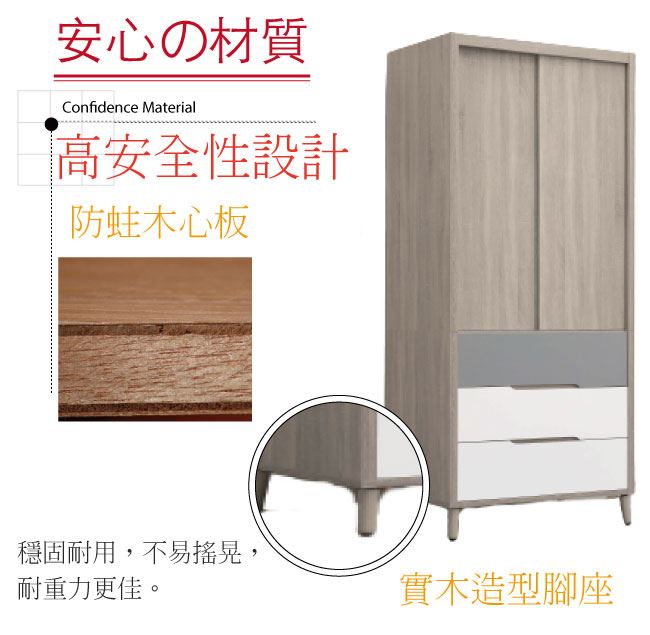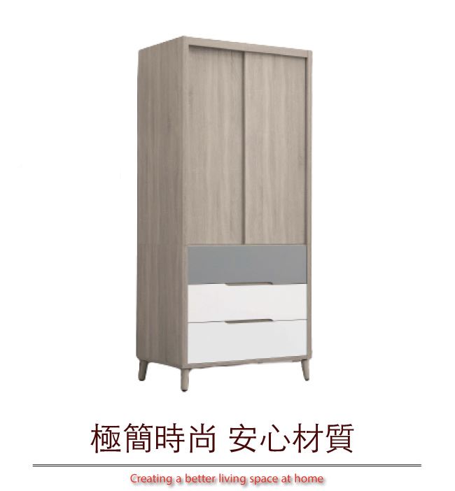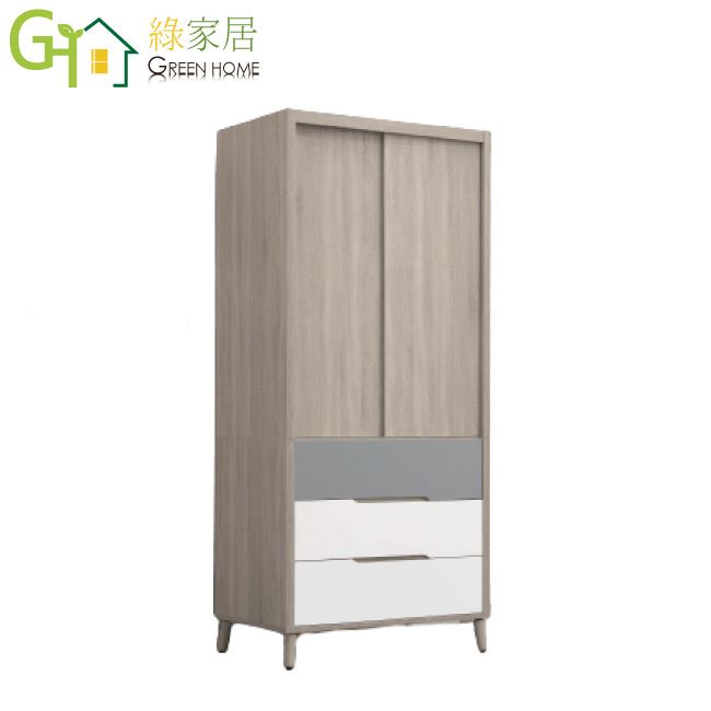 【綠家居】薇斯 雙色3尺推門三抽衣櫃